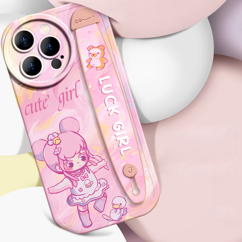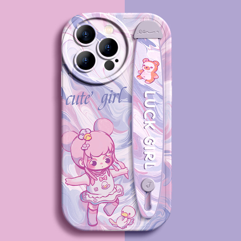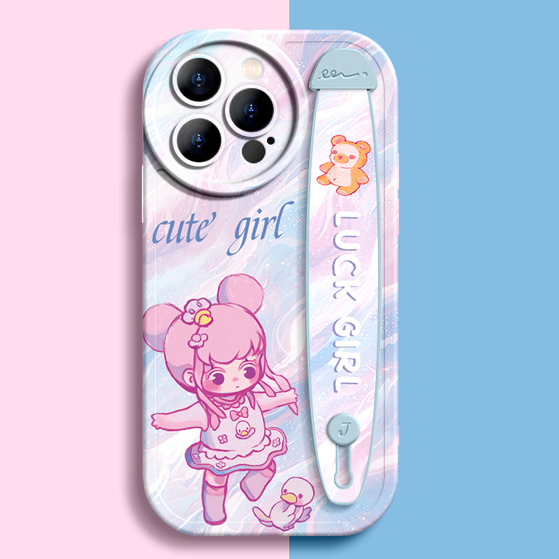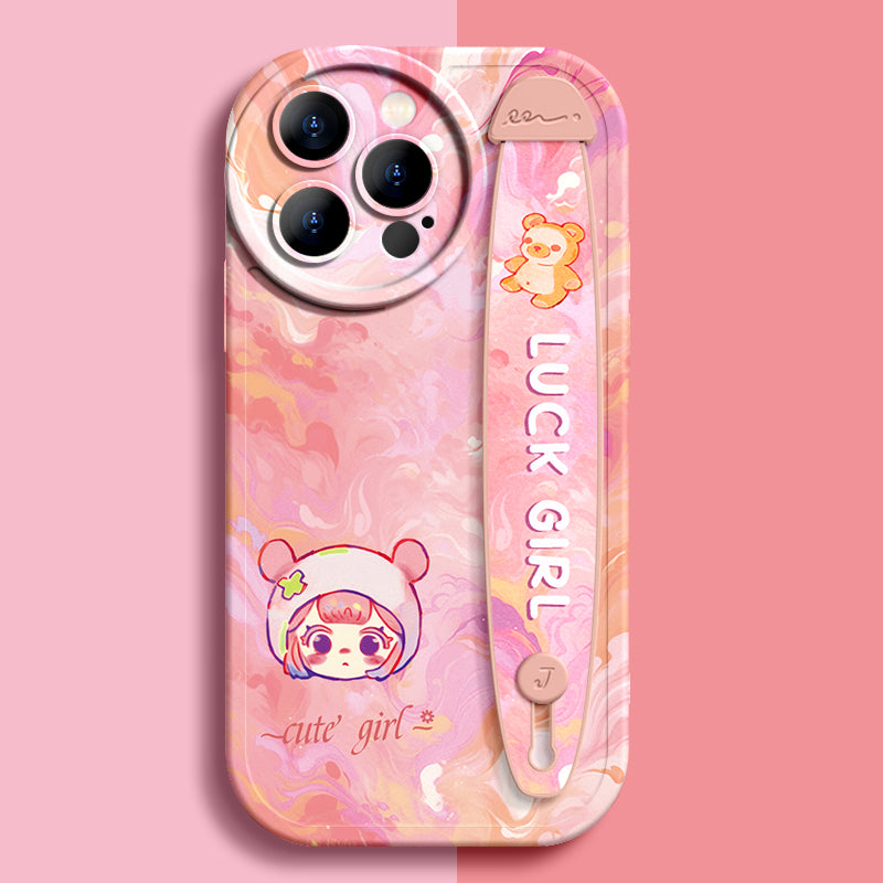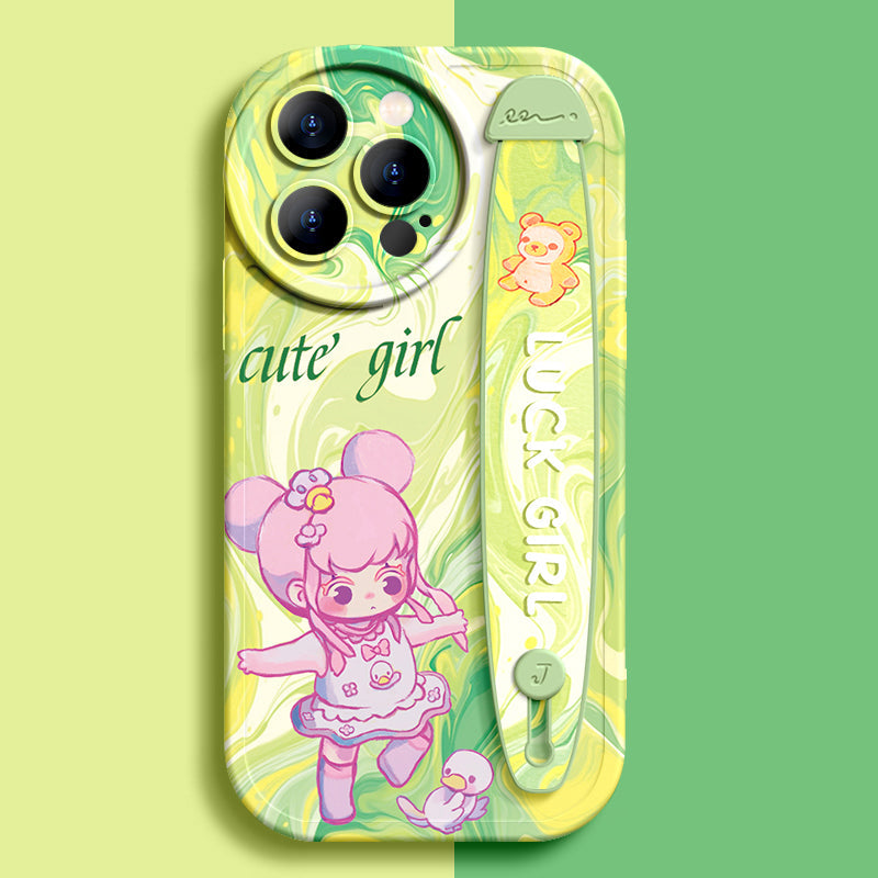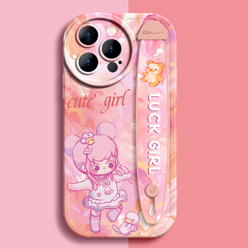 Série iPhone | Étui de téléphone avec bracelet en silicone liquide « Cute Girl »