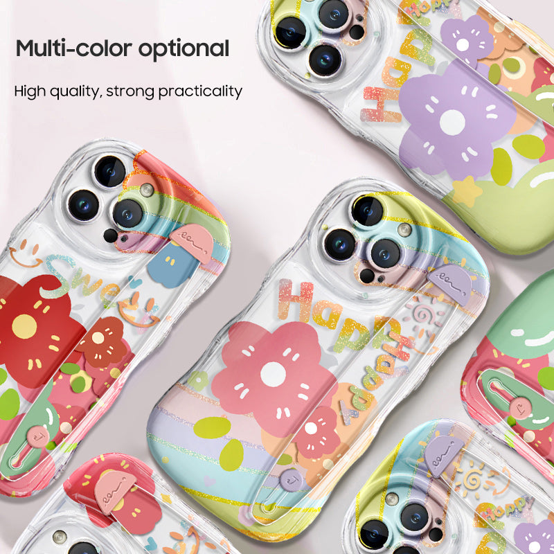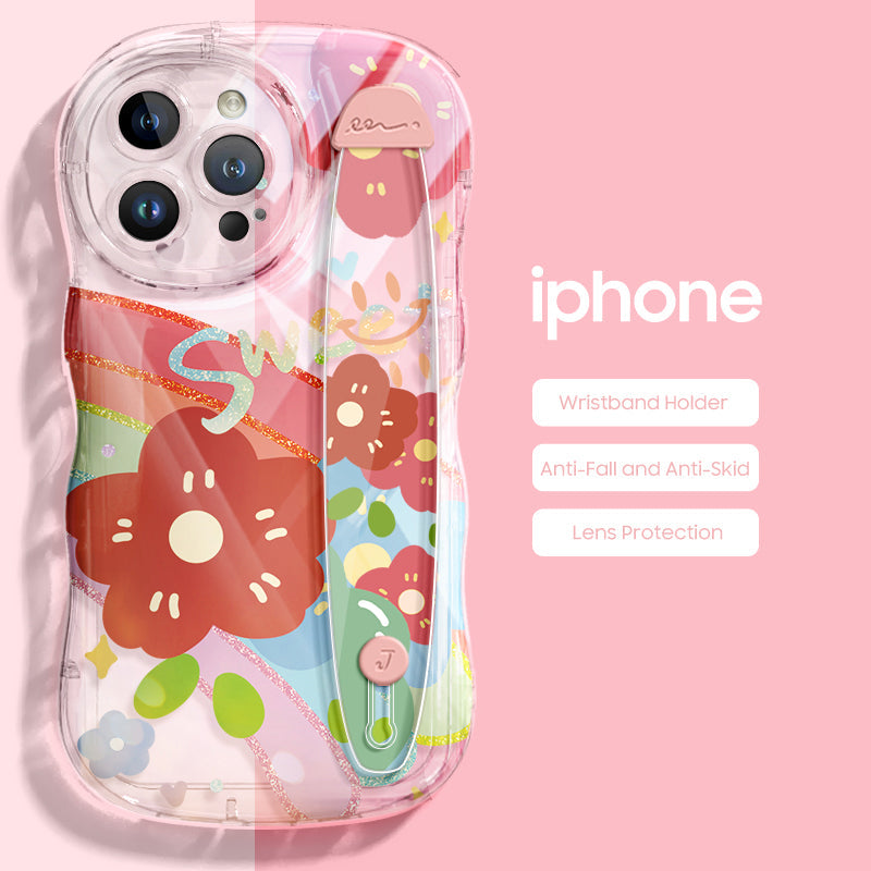 iPhone Series | “Rainbow Flower” Design Transparent Wristband Phone Case