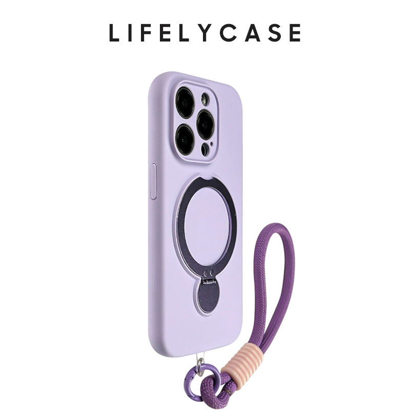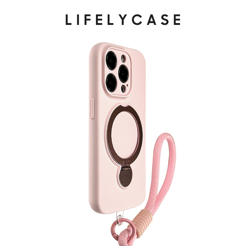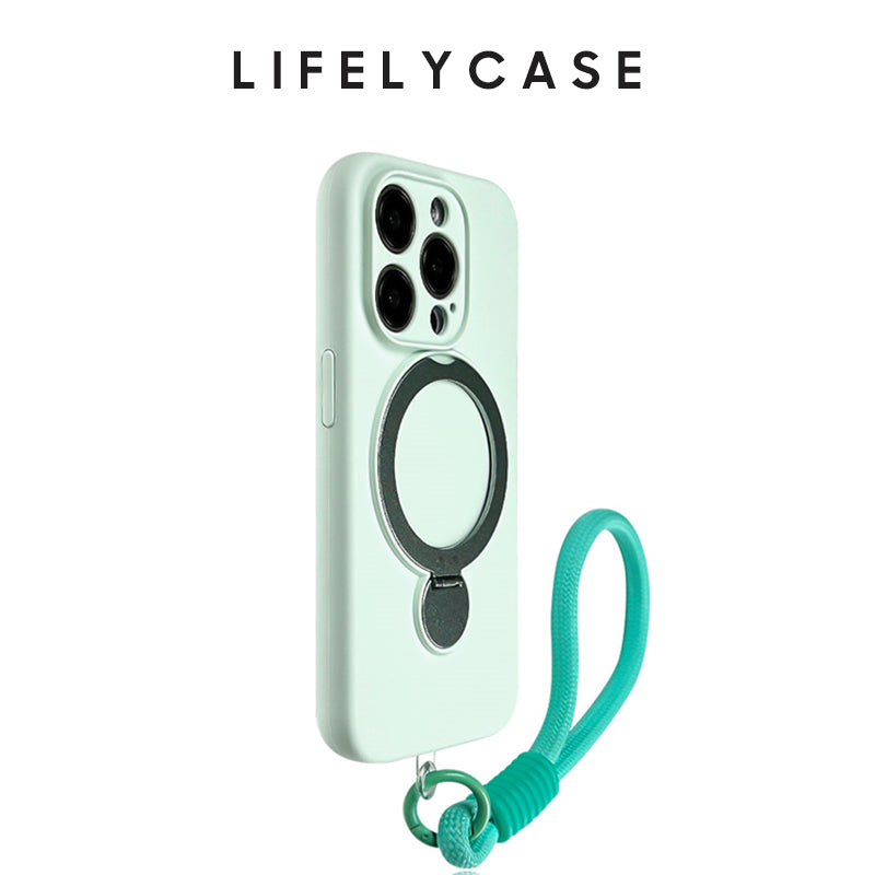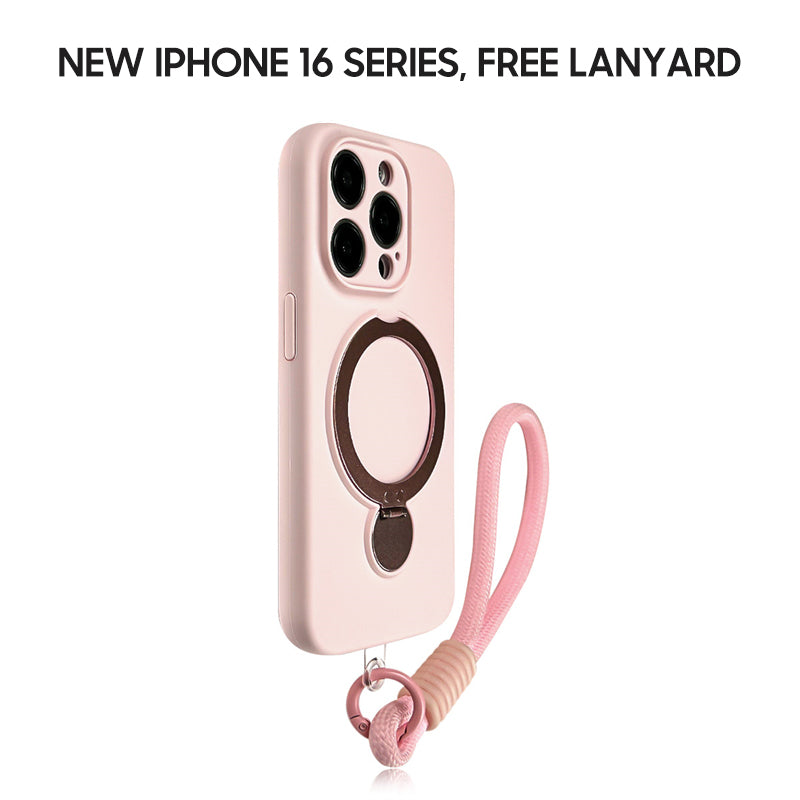 iPhone Lanyard Series | Macaron Color Liquid Silicone MagSafe Magnetic Bracket Phone Case