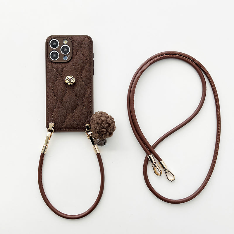 iPhone Lanyard Series | Diamond Pattern Leather Phone Case