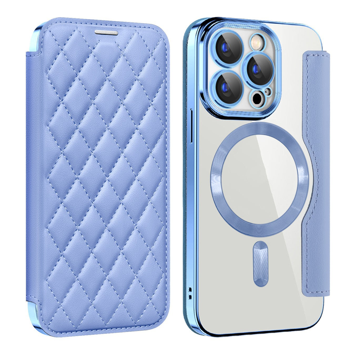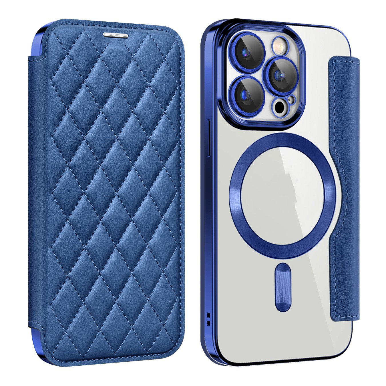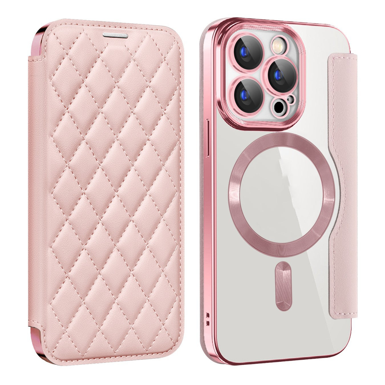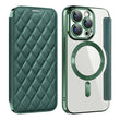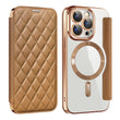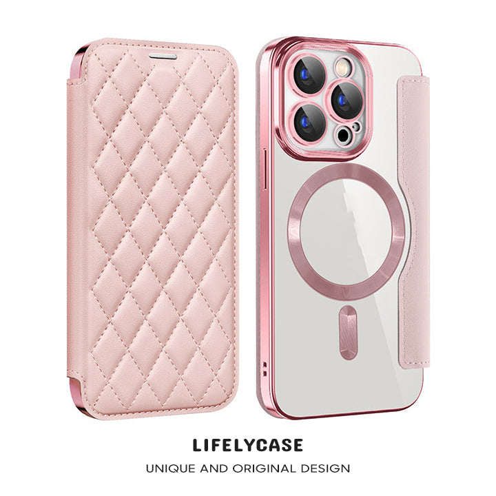 Série iPhone Magsafe | Étui en cuir à rabat à motif de diamant magnétique galvanisé