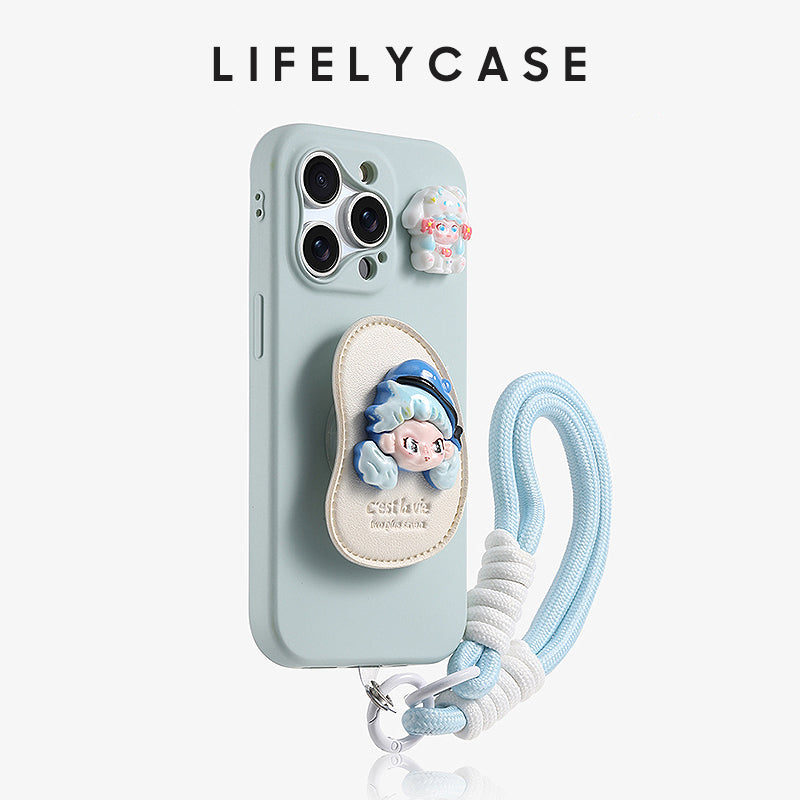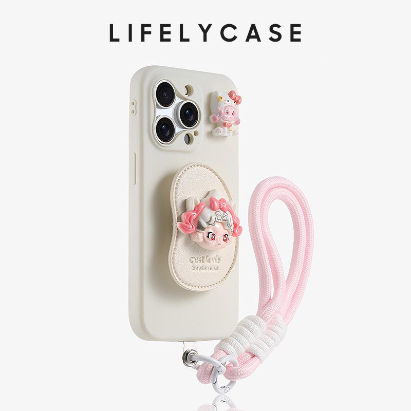 iPhone Lanyard Series | Cartoon Bracket Liquid Silicone Phone Case