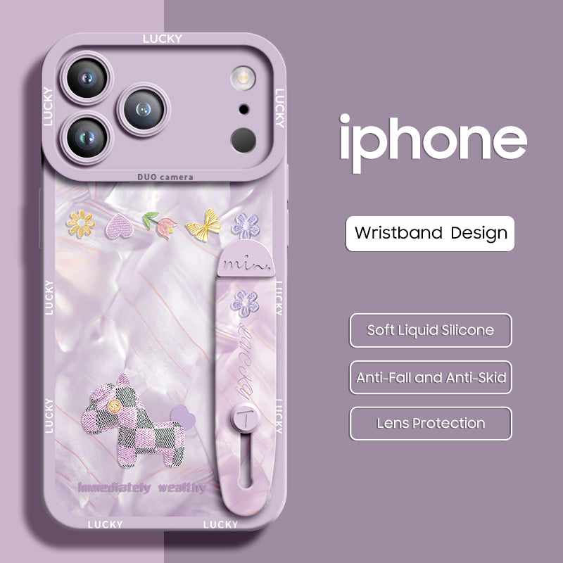 iPhone Wristband Series | "Plaid Pony" Liquid Silicone Phone Case
